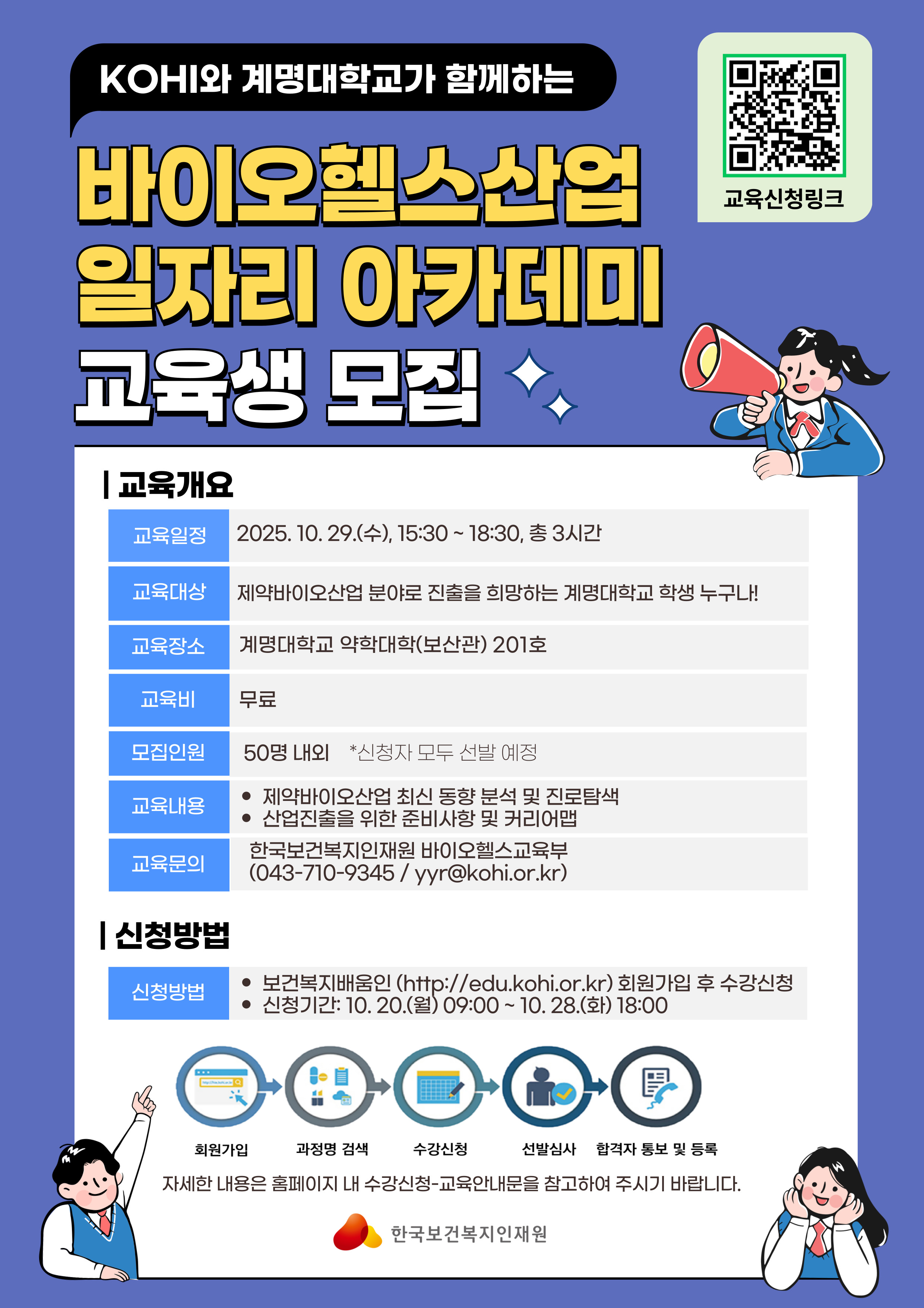KOHI와 계명대학교가 함께 하는 바이오헬스산업 일자리 아카데미 교육생 모집 안내
