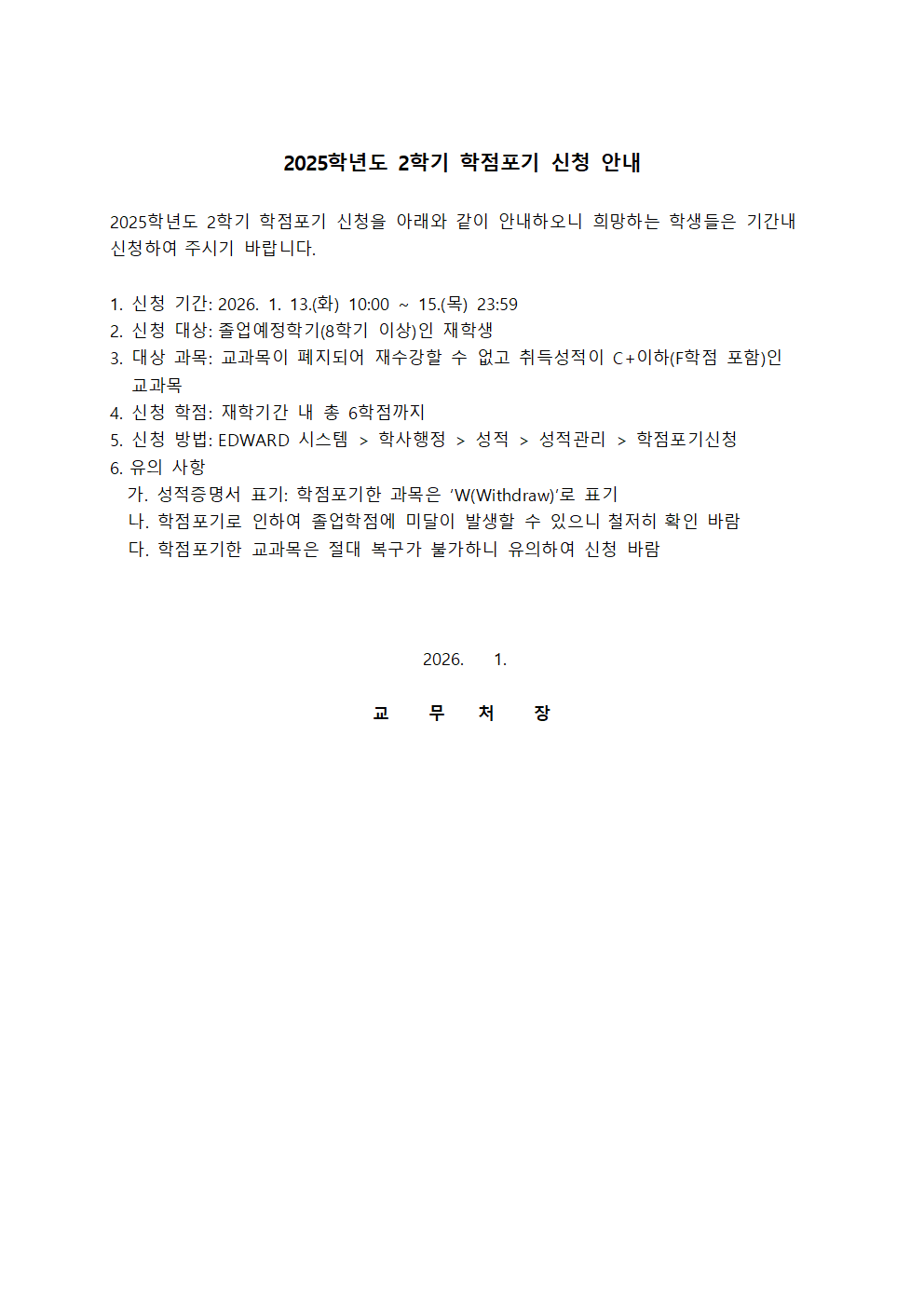 2025학년도 2학기 학점포기 신청 안내